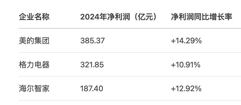 虽然营收表现不一,但在净利润方面,在以旧换新政策刺激下,三大白电巨头在2024年的利润均实现了同比两位数的增长。